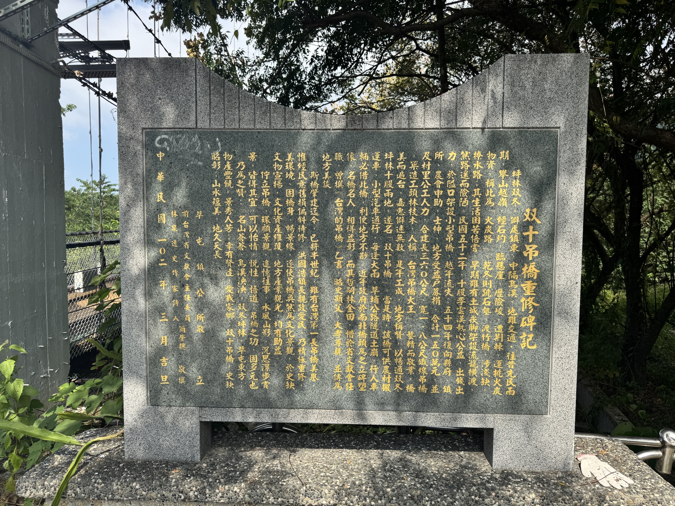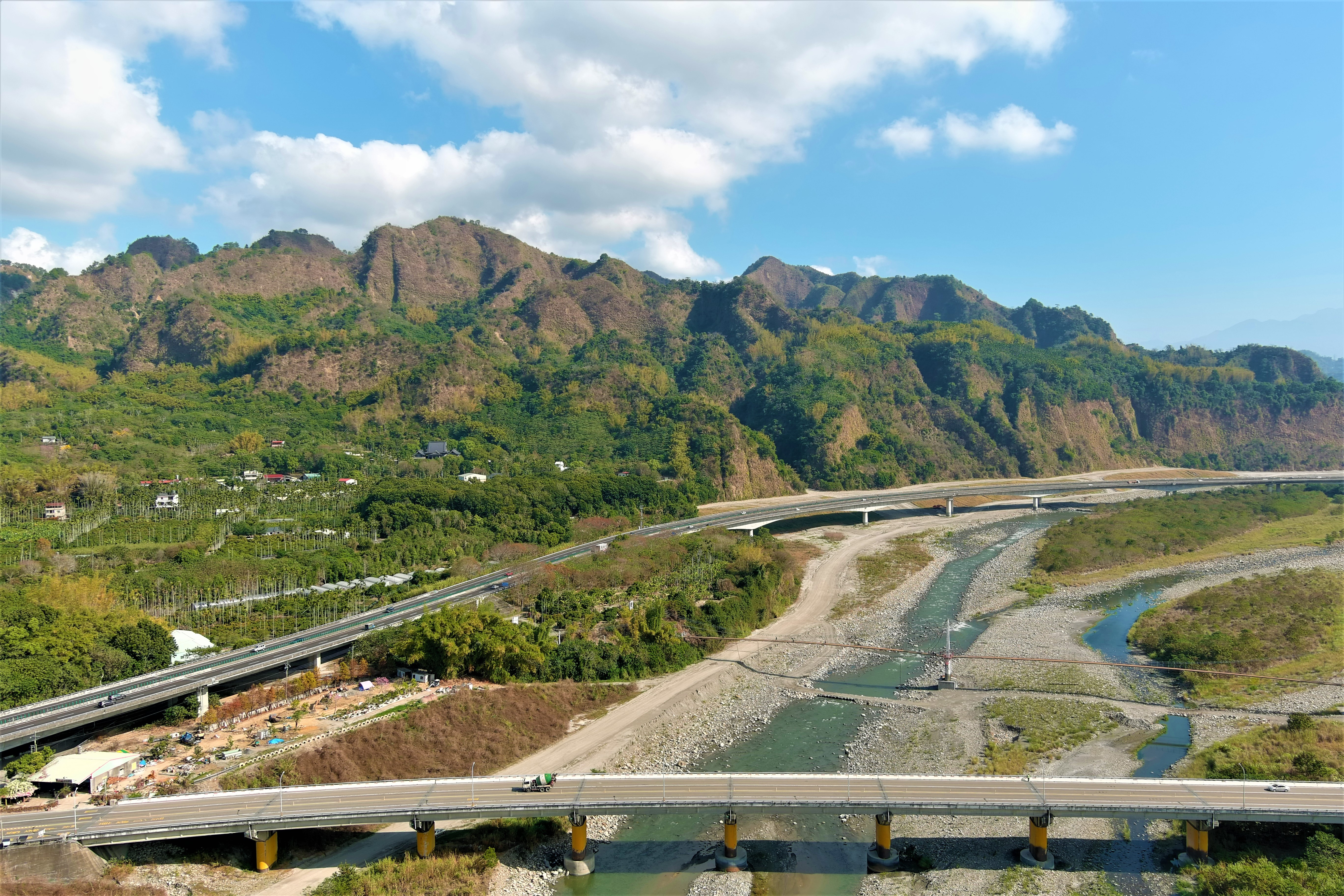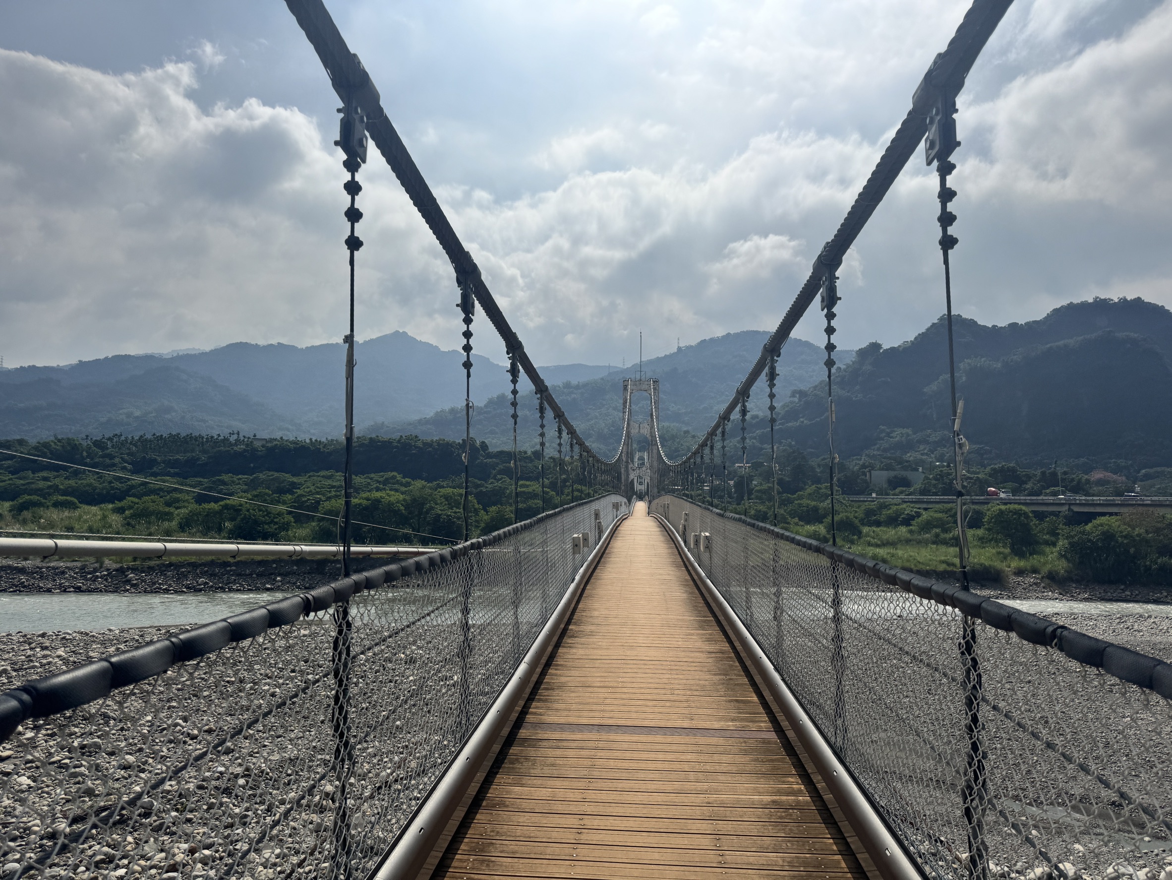 走在吊橋上,俯視而下,潺潺流水,清澈見底。向前望去,可見到令人驚嘆的九九峰,左右兩側國道六號蜿蜒於山林間,向後看更可以遠眺到雙冬山之美,青山綠水。