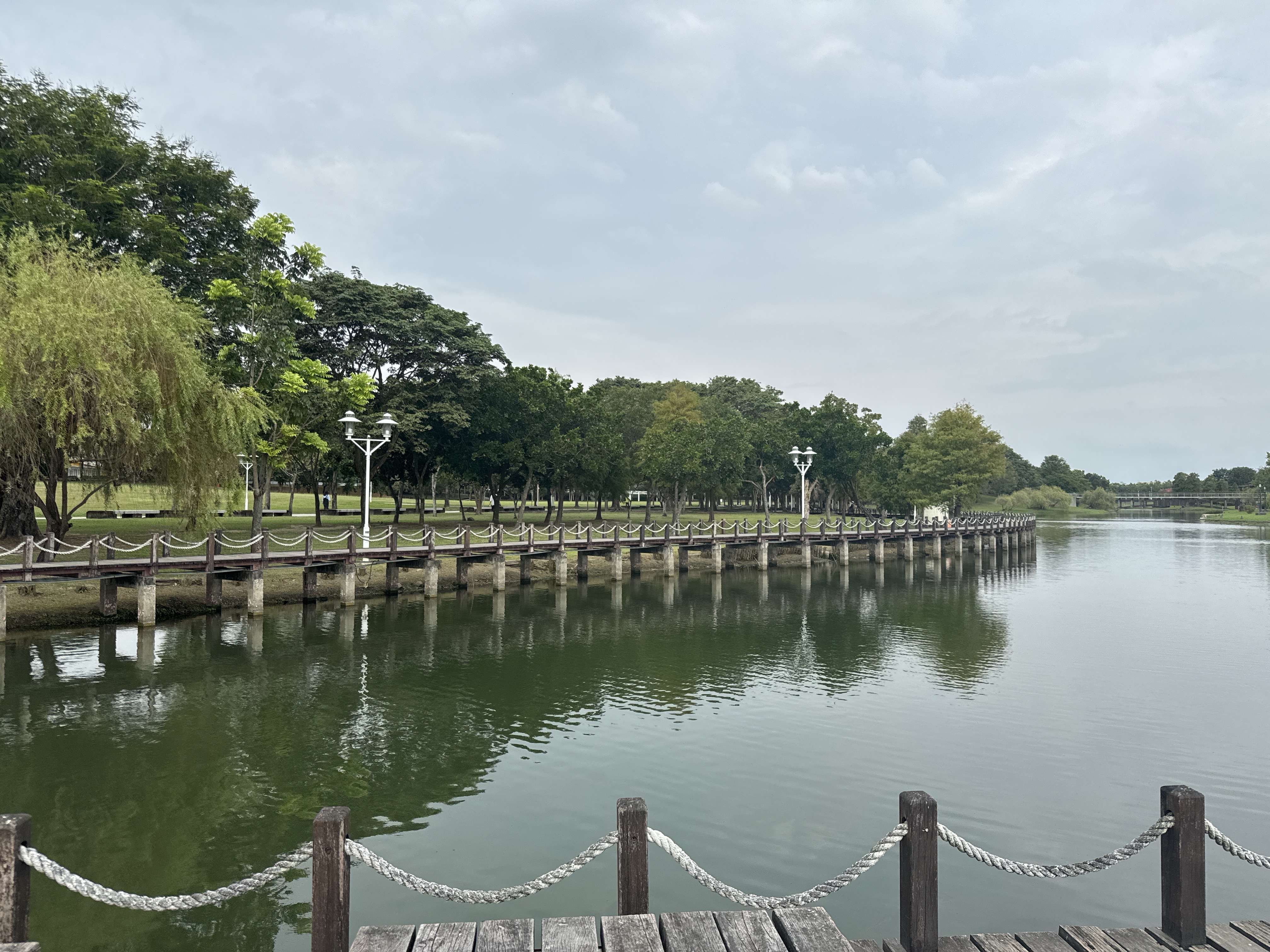 沿著公園內的木棧道散步欣賞廣闊的景致,除生態之外,也有許多藝術裝置陳列其中,更有畫龍點睛的效果,常可見穿著婚紗的新人在公園內取景,是個幸福感滿滿的踏青處。