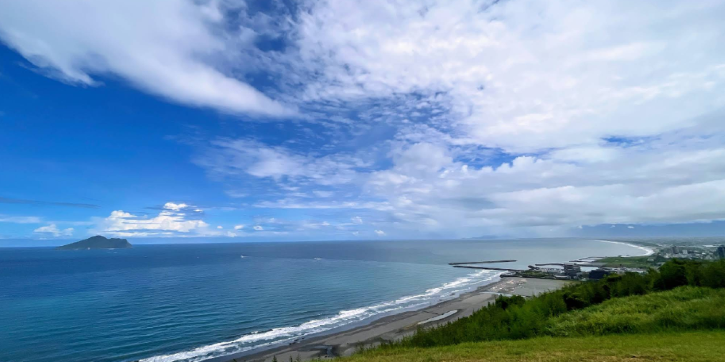 宜蘭外澳沙灘有著柔細的黑色沙灘、開闊的海景,加上整片弧線海灣讓人一看就心情放鬆。遠方常能望見龜山島靜靜浮在海面上,像是替整個景色加上溫柔的點綴。