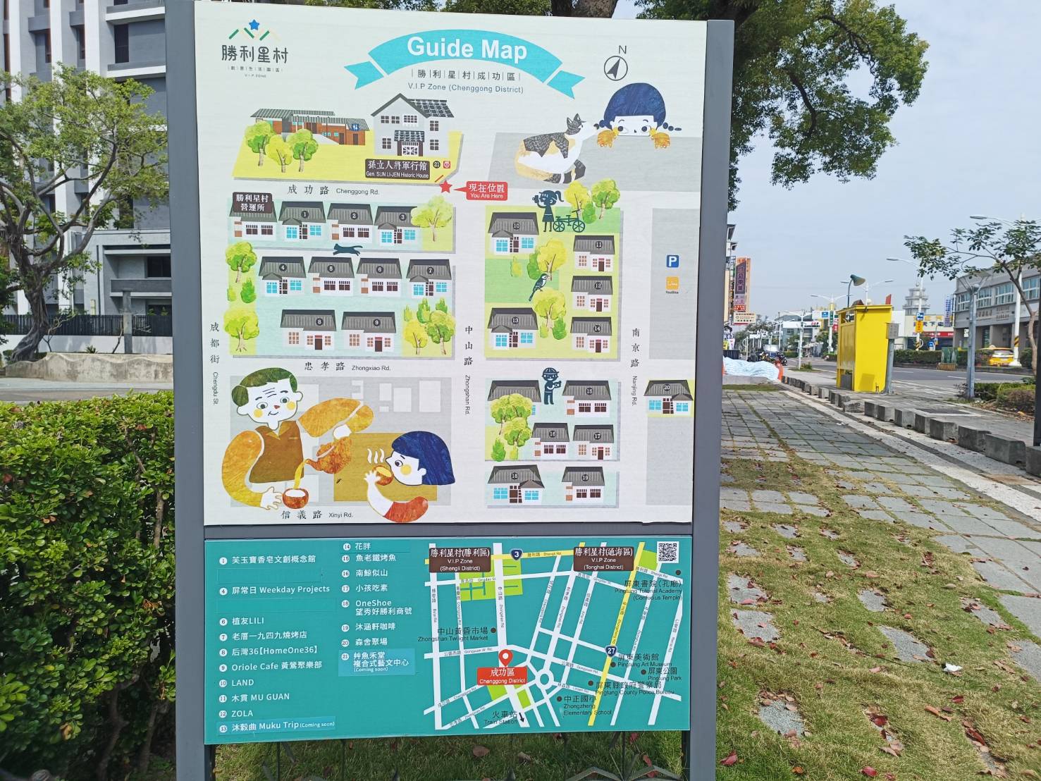 將軍之屋旁還有個特別的標的物,是一座以飛機副油箱為造型打造的水塔,呈現出早期物資缺乏,勤儉的空軍眷民將飛機副油箱改裝為家中水塔。勝利星村站候車亭以台灣早期生活物件「菜櫥仔」為發想,意外爆紅成為IG熱門打卡點,走進勝利星村,開始沿著完整街廓步道輕鬆的漫步閒逛,這裡可以看見那些完整的日式風味建築,好好的感受停留在老時光的那份情懷,無論是白天或夜晚來到勝利星村,都能擁有非常美好的體驗。