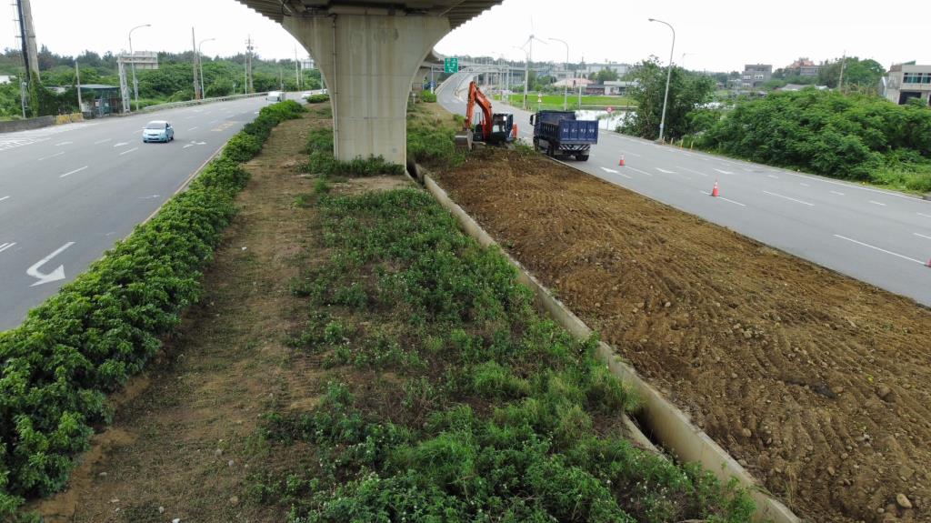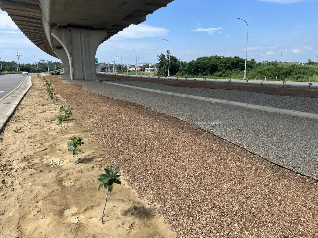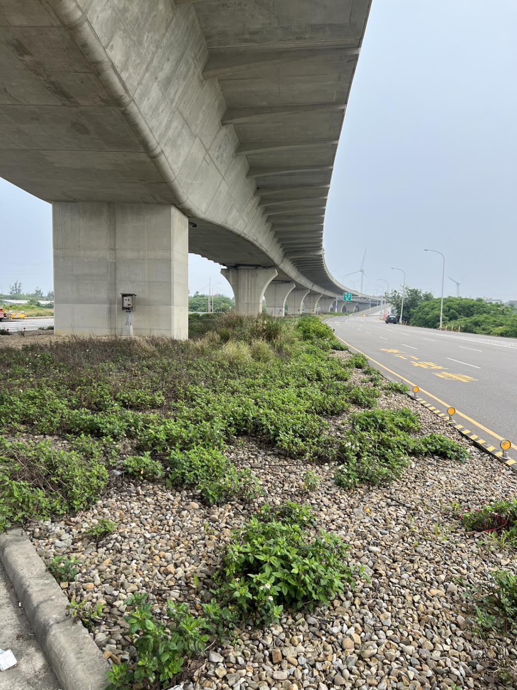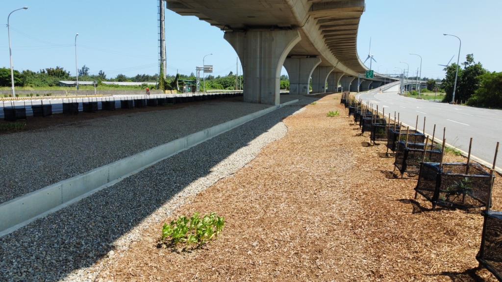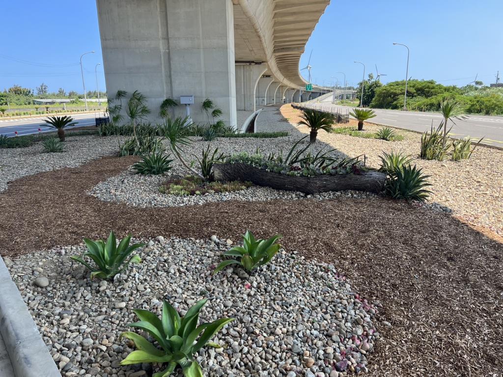 台61線57.8k橋下空間經規劃整理在基地經整地及種植槲櫟、多肉植物等植栽後,景觀明顯改善。
