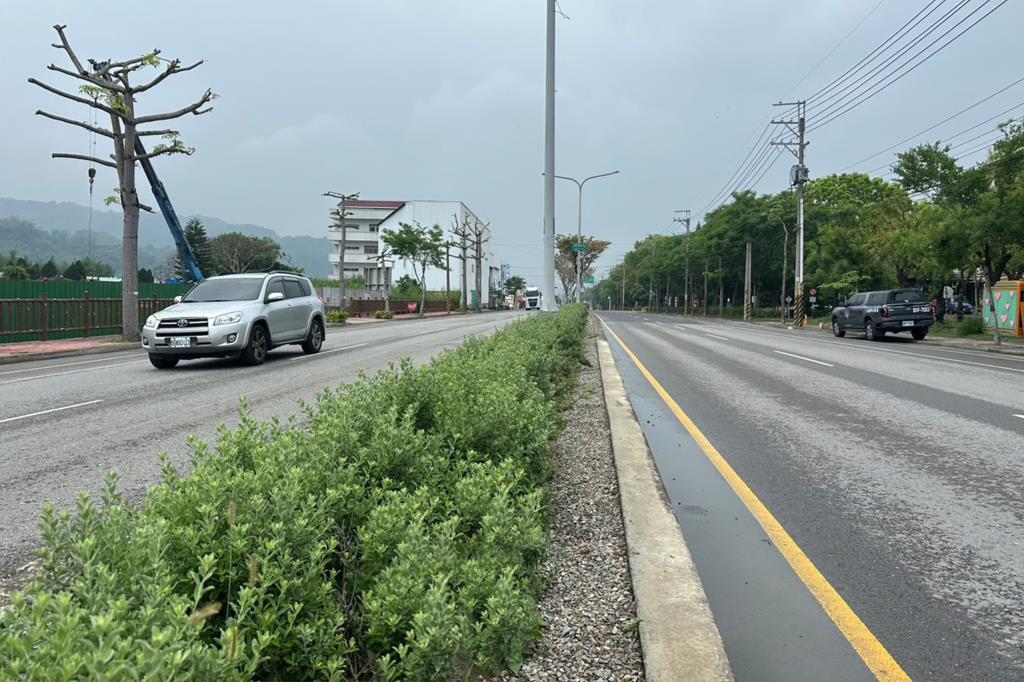 洽請專家評估就枯枝、樹型不良、竄根或無景觀效益之行道樹汰除,並移除枯死或不連續灌木,改植草皮以提升路廊通透性;另緣石內兩側鋪設碎石整合管線,既方便檢修也抑制雜草、提供灌木向外生長空間,提升道路美質。